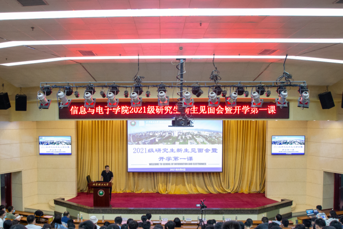 怡人九月,丹桂飘香。2021年9月6日上午,北京理工大学信息与电子学院在中心教学楼报告厅及211教室举行了2021级研究生新生见面会暨开学第一课。学院院长忻向军、党委书记崔嵬、副院长陈禾、司黎明,班主任代表费泽松、王学田,学生工作办公室专兼职辅导员及全体2021级研究生参加了本次大会。会议由学院党委副书记、副院长邓岩主持。