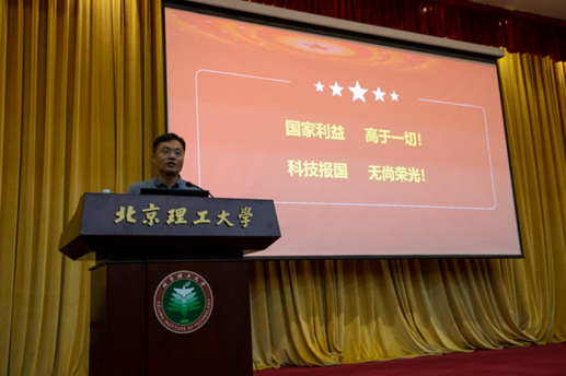 在开学第一课环节,崔嵬对新生们进行了爱国主义、安全与保密教育。他从国家秘密的定义和范围、泄露国家秘密的定义及处罚、国际形势及应对措施出发,落实到日常工作中的注意事项,强调了安全与保密工作的重要性。他多次提醒全体新生要加强对保密知识的学习,强化自身的保密意识,筑牢保密防线,守护国家安全。最后,他以“国家利益,高于一切;科技报国,无上荣光”为结语,为新生上了一堂难忘的安全与保密教育课。