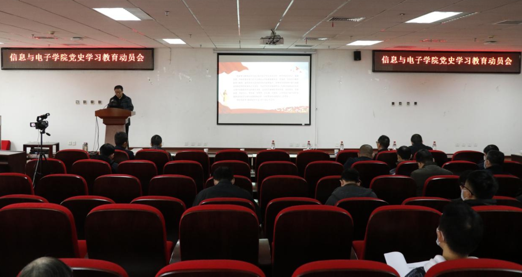 3月19日下午,信息与电子学院召开党史学习教育动员大会暨专题学习第一课,将党史学习教育动员会与3月理论学习会相结合,以深入学习贯彻习近平总书记在党史学习教育动员大会上的讲话精神,印发学院3月理论学习汇编材料、学院党史学习教育实施方案和党史学习书籍。学院党委委员、行政班子成员、院长助理、师生支部书记全体在202报告厅参加现场会议。同时通过现场腾讯会议实时共享屏幕连线,500余名师生通过腾讯会议线上参会,形成了线上线下相结合共同参加党史学习教育动员会的良好氛围。