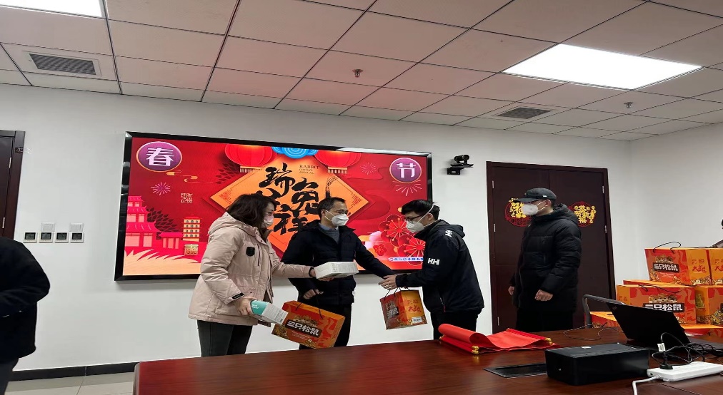 随后,杨凯、侯明佳及留校辅导员为同学们送上学院精心准备的新年礼(“坚果礼盒+N95口罩礼盒”)。学院暖心护航,希望不能返回故里与亲人团聚的学子们,能够在校园里感受到他乡亦故乡的温情,过一个“暖心年”。