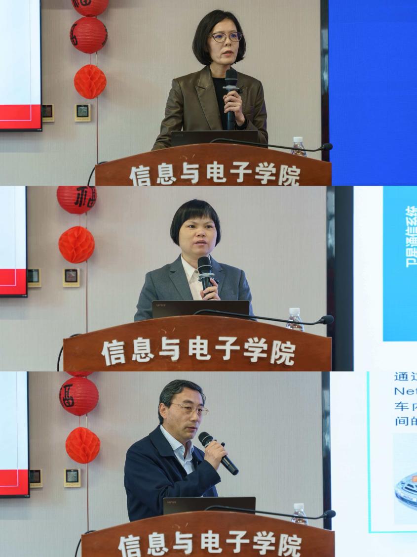 随后,科普讲座在信息科学实验楼202报告厅举行,由郭婧主持。三位行业专家依次带来精彩报告:中信科移动高级技术专家、北京理工大学及北京航空航天大学博士生导师康绍莉围绕“卫星互联网技术”作专题分享,聚焦星地融合发展状况、手机直连卫星、6G星地融合等方面的内容;中国信息通信研究院知识产权与创新发展中心副主任、高级工程师闫坤深入解读“低空装备产业”发展前景,详细介绍了产业发展背景、现状以及发展展望;教授级高工、中国通信学会车联网专业委员会秘书长胡延明全面介绍“蜂窝车联网技术与产业”发展态势,重点阐述了技术演进路径、标准化进展及典型应用场景。讲座结束后,主办方设置互动交流环节,与会师生与专家围绕报告内容深入探讨,现场氛围热烈。