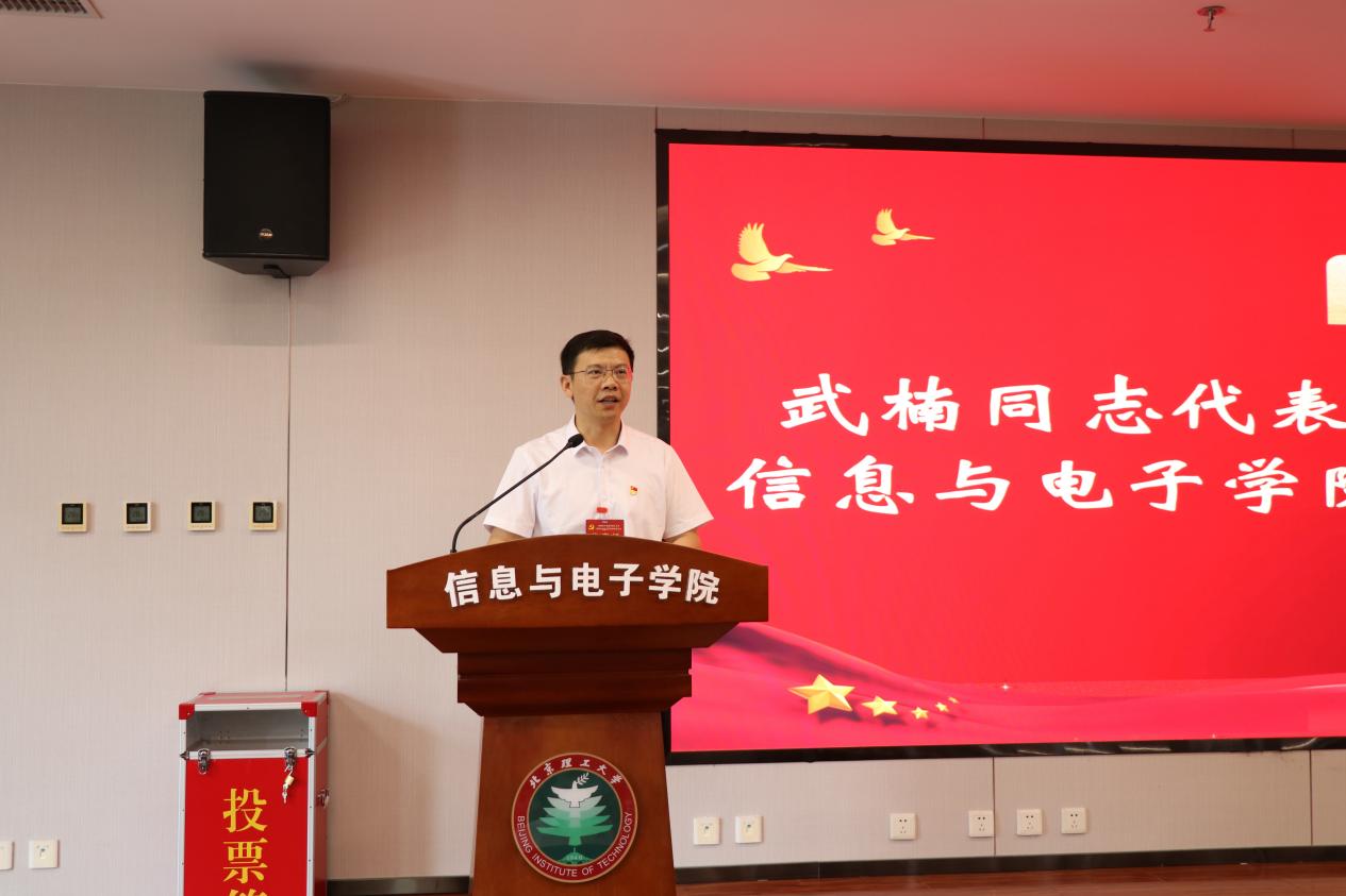 北京理工大学党委常委、副校长魏一鸣,中国工程院院士、全国优秀共产党员毛二可,北京理工大学原校长匡镜明教授,北京理工大学党委组织部副处级组织员管帅华、以及信息与电子学院全体领导班子、党委委员及党员代表出席大会。