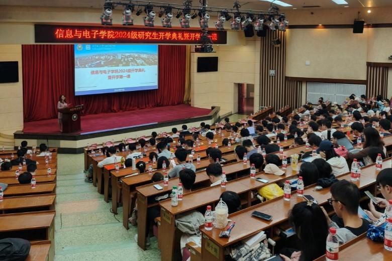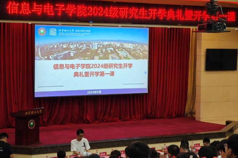 九月风清,金秋已至。9月9日晚,北京理工大学信息与电子学院在中心教学楼报告厅举行2024级研究生开学典礼暨开学第一课。学院院长崔嵬,副院长陈禾、杨凯、李伟,心理健康教育与咨询中心主任李旭珊,就业指导中心钟芳芳老师,资产与实验室管理处刘博睿老师,保卫部王坤老师,2024级研究生班主任代表贾丽娟、董泽,学生工作办公室专兼职辅导员及全体2024级研究生参加了本次大会。会议由学院党委副书记、副院长侯明佳主持。