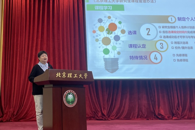 陈禾面向2024级研究生进行了研究生培养过程教育,她从研究生人才培养的目标与定位出发,介绍了教务运行、质量监控、学籍管理、毕业要求、奖助体系、国际化交流等方面的内容。她表示,学院提供了广阔的学习空间和科研平台,鼓励同学们明确自己的发展方向和研究领域,熟悉研究生培养过程,共同创造积极、健康、和谐的学术氛围和科研环境。