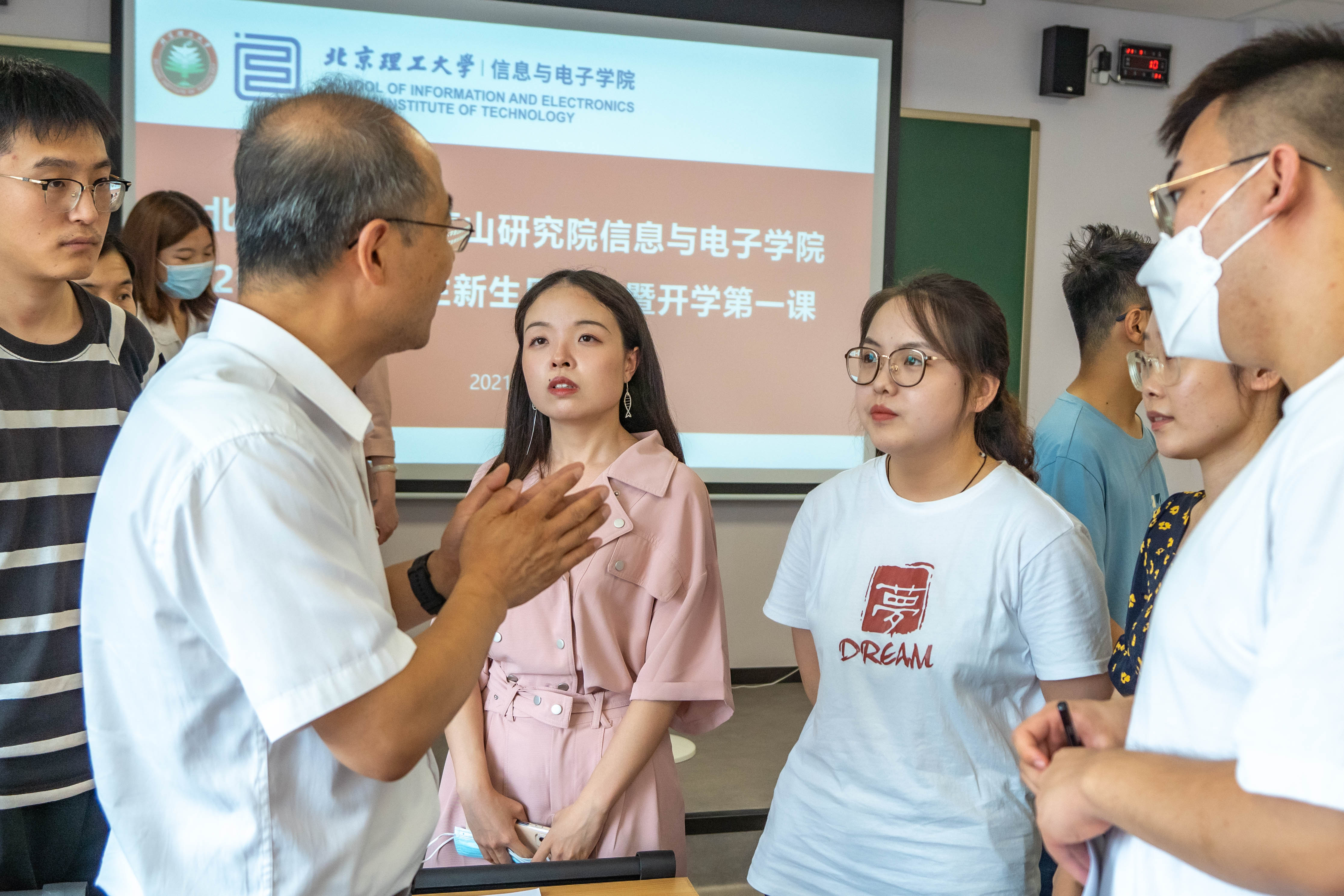 随后,研究生导师任武代表全体导师向全体来到唐山研究院的学生表示热烈的欢迎,并向在场研究生介绍了北京理工大学信息与电子学院的院史院情,之后从理想信念、国防教育、北理工精神等方面对新生进行了思想政治教育,鼓励学生们在研究生新阶段,树立远大而坚定的理想信念和家国情怀。