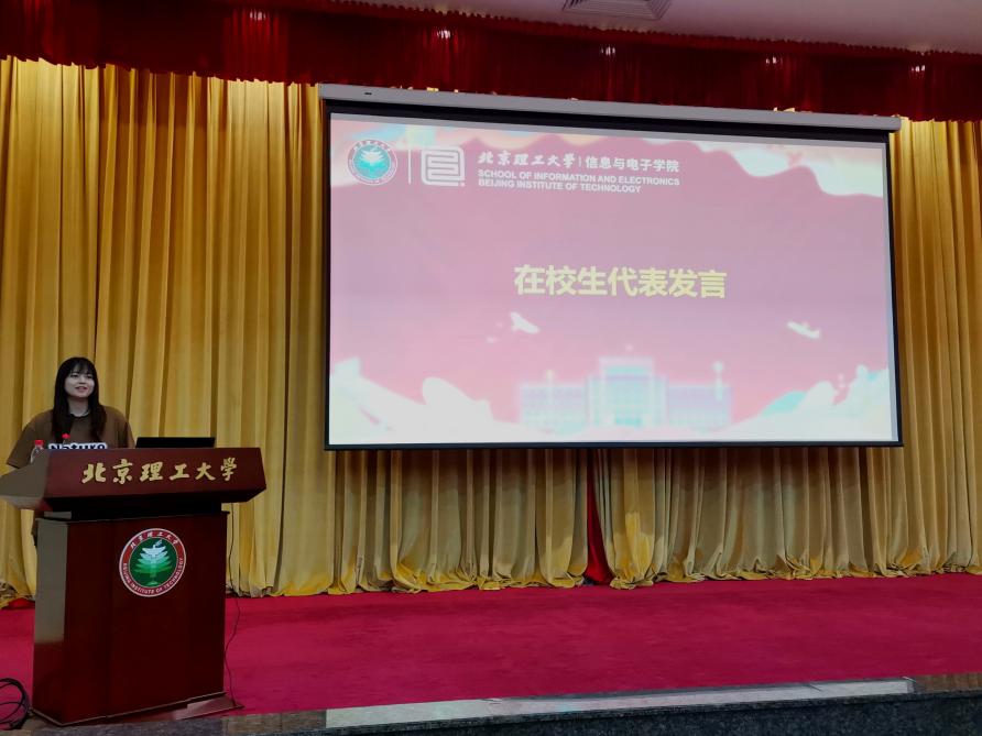 随后,2023级博士研究生刘鹏作为新生代表发言,表示将以北理工的红色基因为指引,积极投入科研与学术,为实现中华民族伟大复兴的中国梦贡献力量。他说道:“让我们以科技报国为责任感与使命感,携手在北理工这个广阔的平台上书写属于自己的最绚烂的青春篇章。”