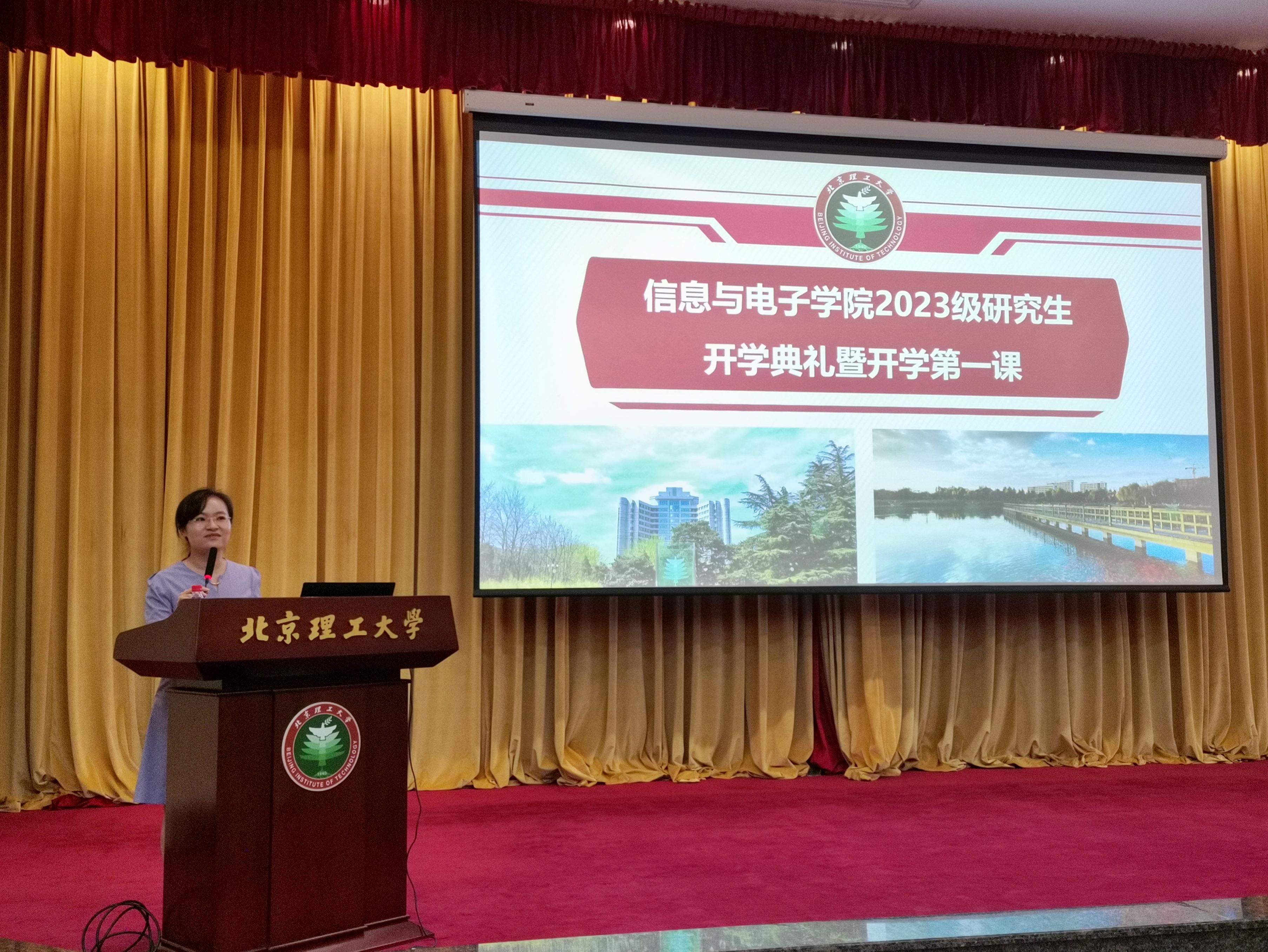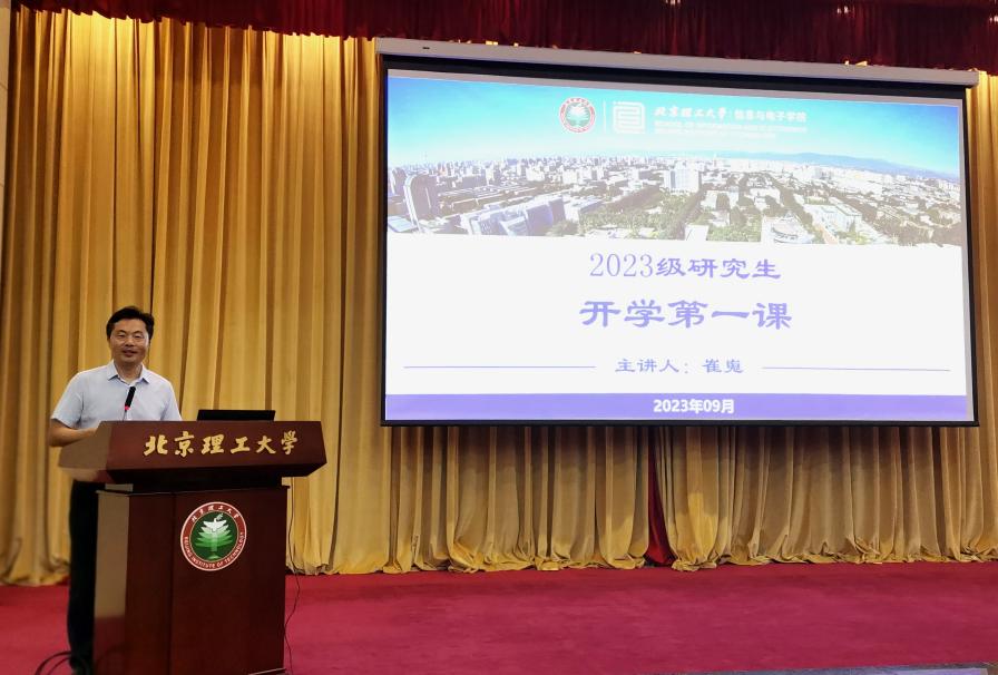 怡人九月,丹桂飘香。9月5日晚,北京理工大学信息与电子学院在中心教学楼报告厅举行2023级研究生开学典礼暨开学第一课。学院院长崔嵬,副院长陈禾、杨凯、李伟,心理健康教育与咨询中心主任李旭珊,2023级研究生班主任代表贾丽娟、董泽,学生工作办公室专兼职辅导员及全体2023级研究生参加了本次大会。会议由会议由学院党委副书记、副院长侯明佳主持。