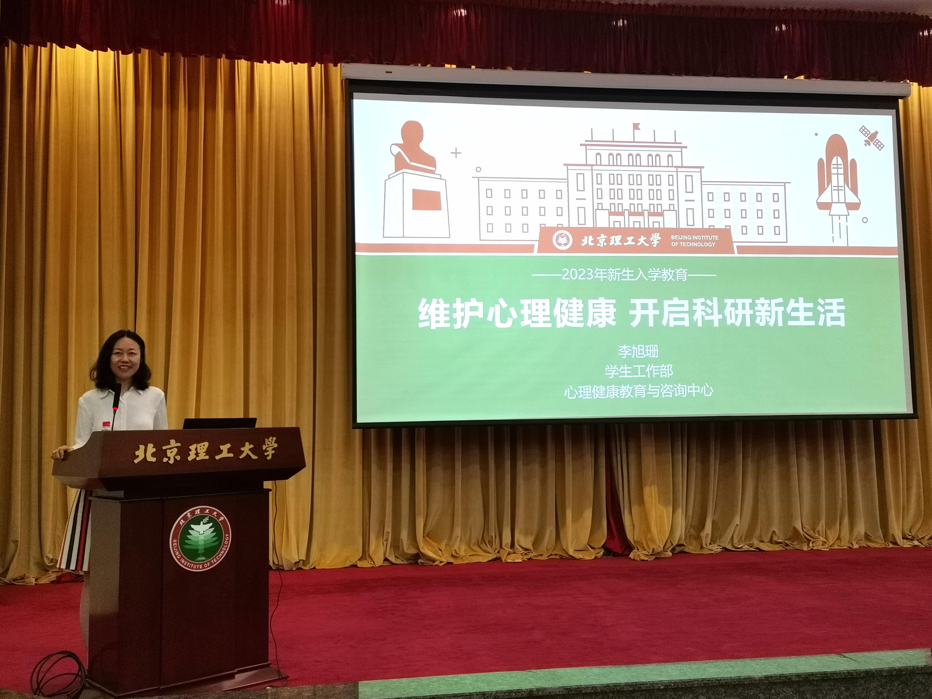 李旭珊面向2023级研究生开展心理健康教育。她从适应与发展、研究生常见心理困扰、情绪调节与压力应对等方面出发,讲述了研究生阶段同学们可能面临的心理困扰与问题,并通过生动的案例分析,向同学们介绍了多种情绪调节方法与压力应对技巧。她强调保持良好心态的重要性,鼓励同学们在面对困难时不骄不馁,勇往直前,积极投身于学术研究和祖国建设的伟大事业中。