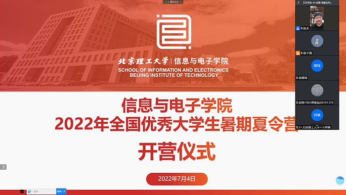 7月6日上午9时,北京理工大学信息与电子学院2022年全国优秀大学生暑期夏令营闭营仪式通过腾讯会议线上开展,信息与电子学院院长忻向军、学院党委副书记侯明佳、学院副院长陈禾、其他学院领导,以及各学科专业的相关教师出席闭营仪式。