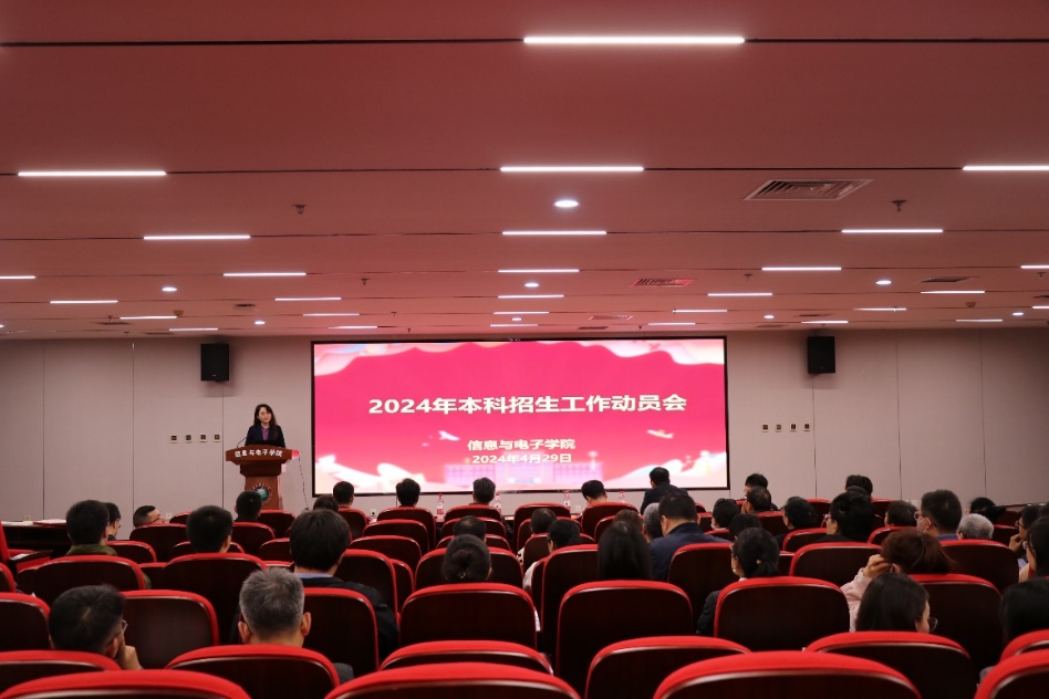 2024-05-14为贯彻落实学校招生宣传工作总体要求,统筹部署学院相关工作,4月30日下午,信息与电子学院召开2024年本科招生宣传工作动员会。学院院长崔嵬、党委书记武楠、教师发展中心主任张笈、学生服务中心主任郝洪涛、学术期刊中心副主任刘博联、学院党委副书记、副院长侯明佳、副院长李伟出席会议,全体领航人参加会议。 侯明佳回顾了学院2023年招生工作成果,提出了2024年总体目标。她通...